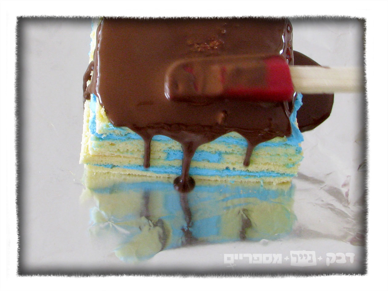 - טובלים את הרצועות הארוכות בשוקולד (זהירות, מטפטף!!!)