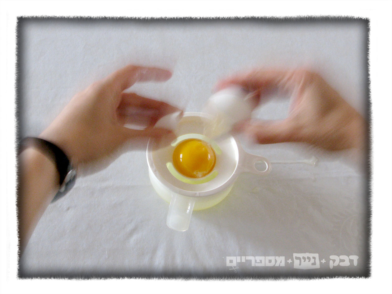 - מקציפים חלבונים לקצף יציב, ומוסיפים את הסוכר לאט לאט.