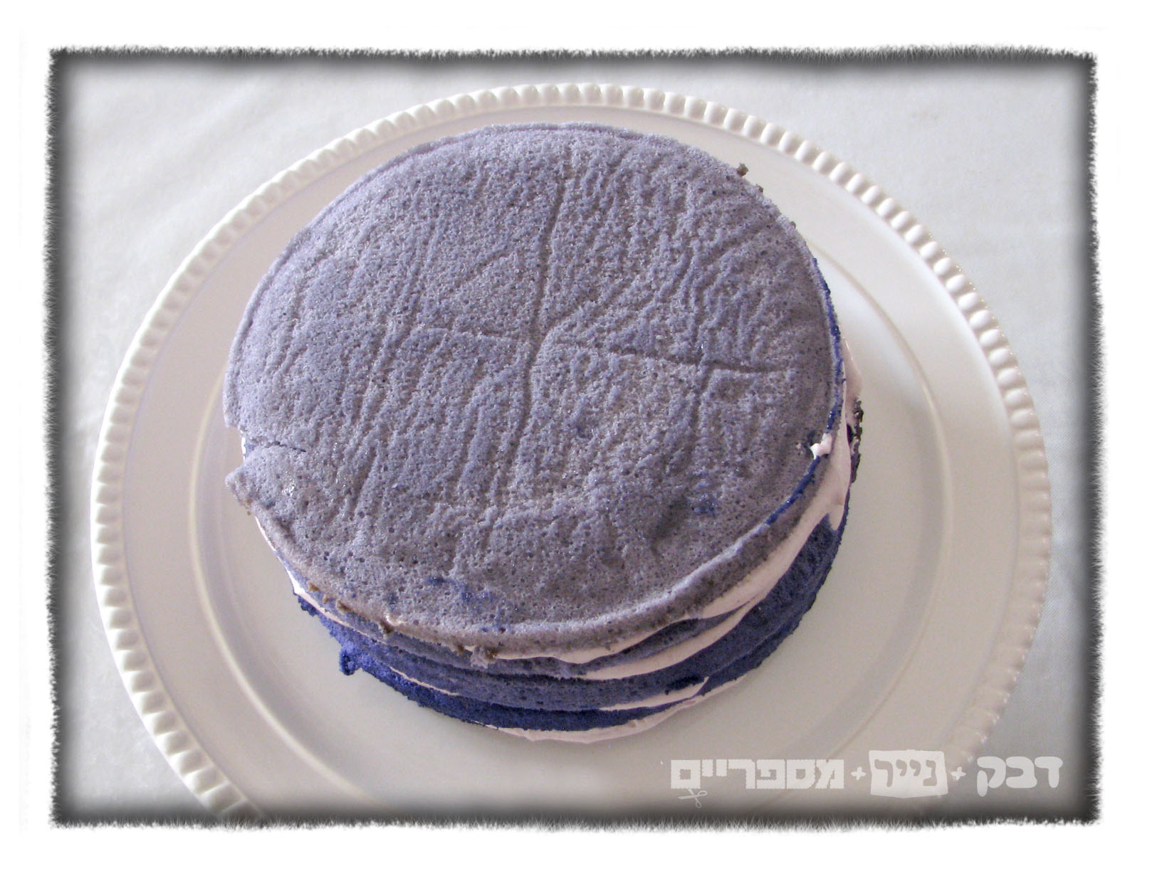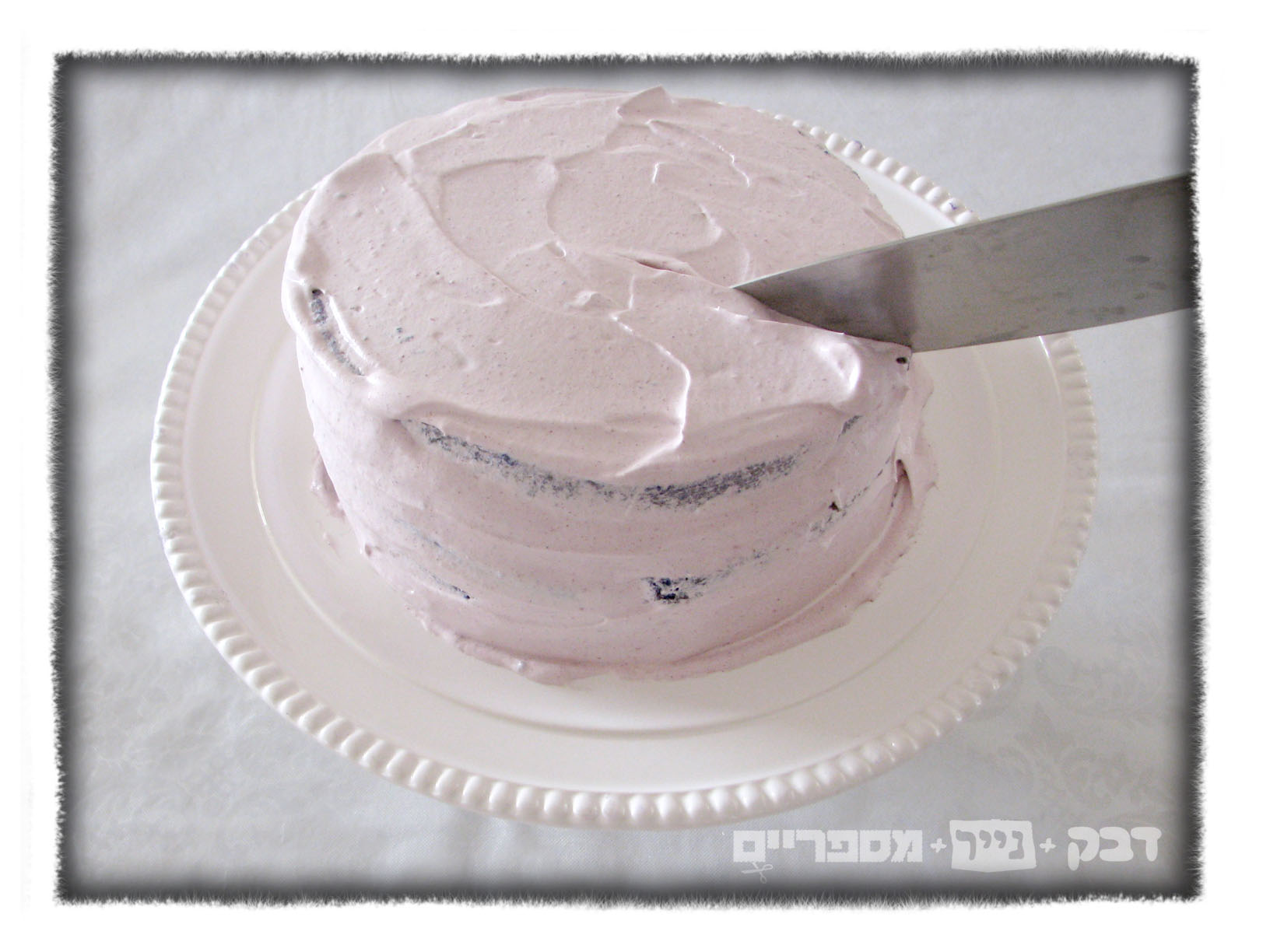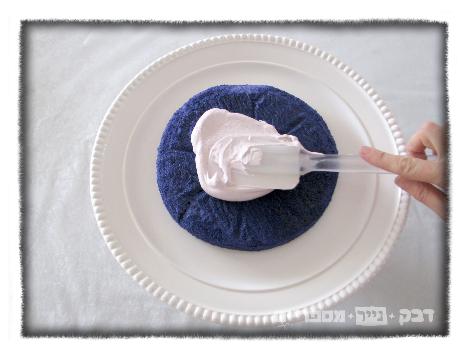 מניחים מעל את העוגה הכמעט סגולה ביותר