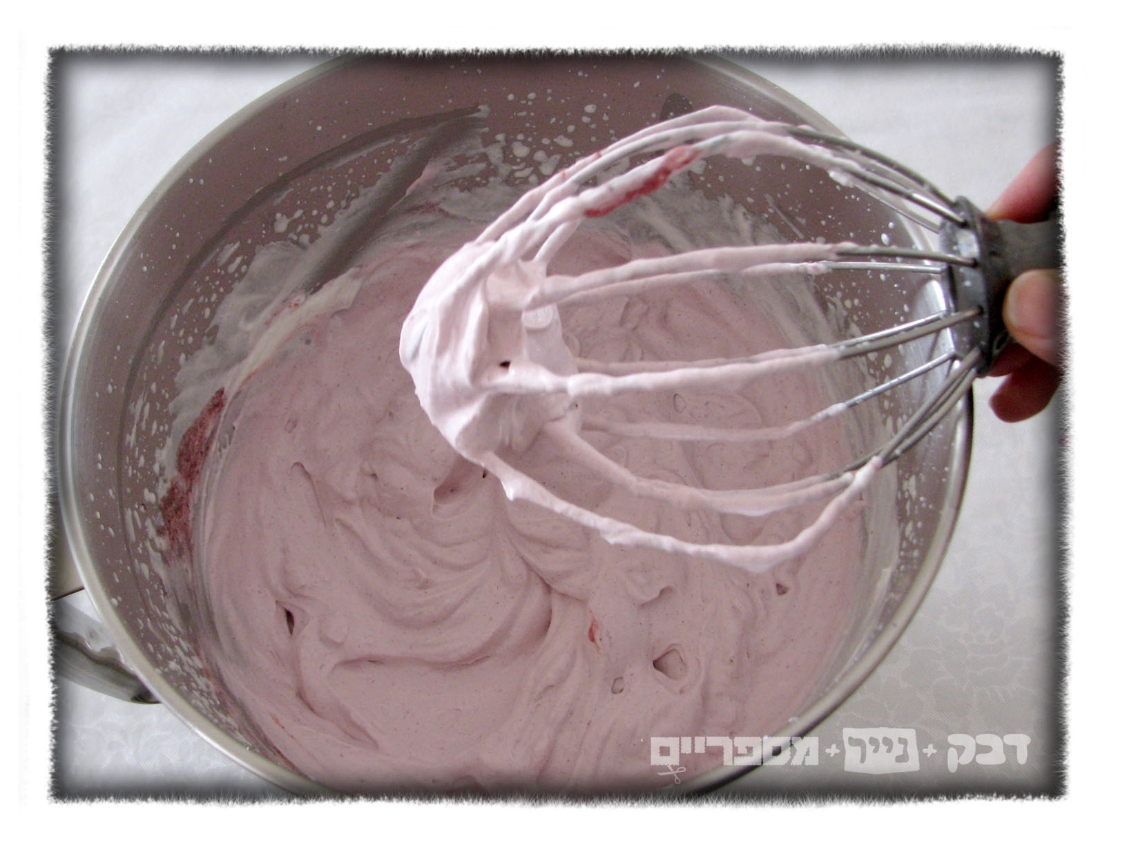 מקציפים שמנת מתוקה, מוסיפים את הסורבה ומקציפים עוד קצת.