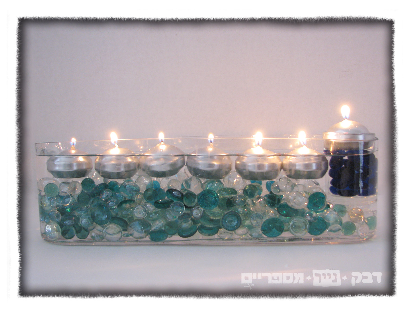 בהמשך החג נצטרך להשתמש בנרות קצת יותר קטנים כדי שיכנסו כולם, או להוציא את השמש מהבריכה, שישגיח מהצד שהנרות לא ישתוללו.