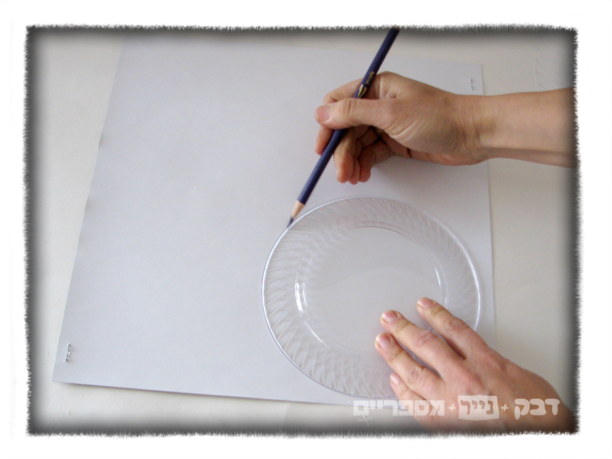 משרטטים עיגולים שיהיו בגודל או קצת יותר גדולים מבסיס הצלחת הגדולה (למשל בעזרת צלחת קצת יותר קטנה)