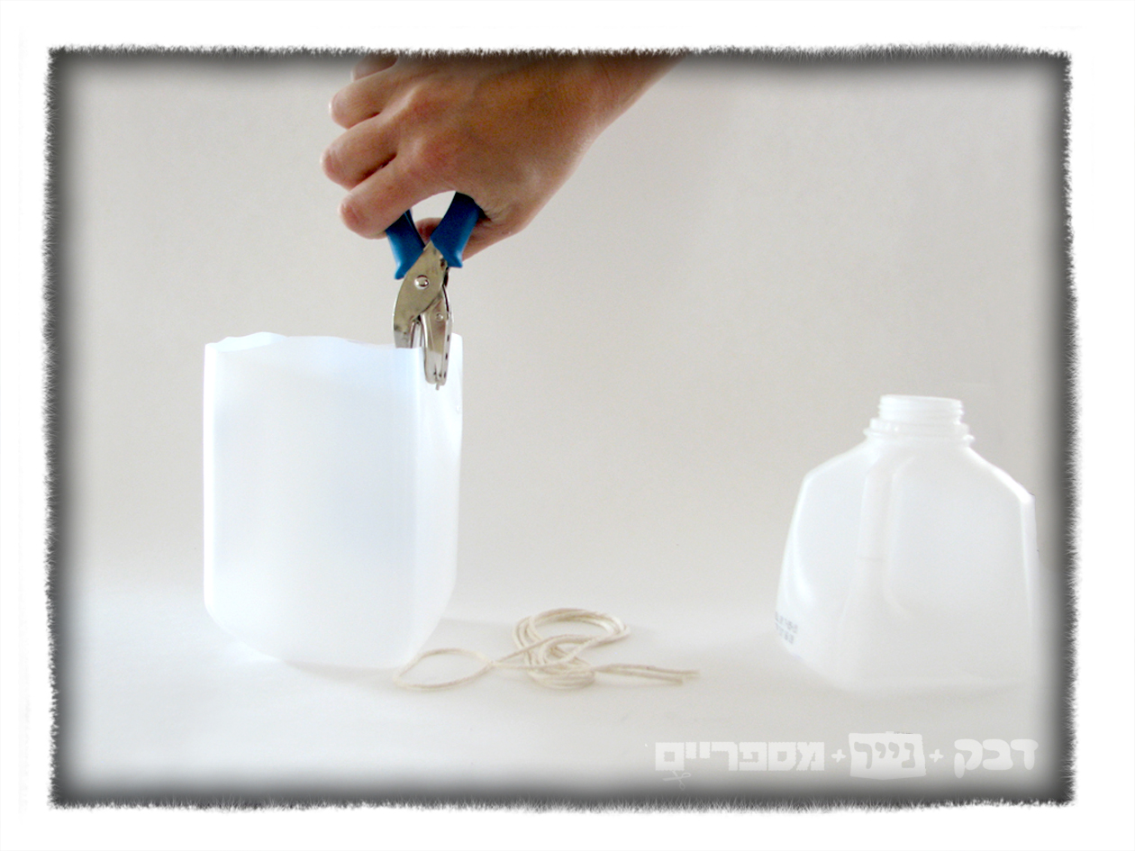 החלק התחתון הופך לדלי: שני חורים וחבל דק בתור ידית.