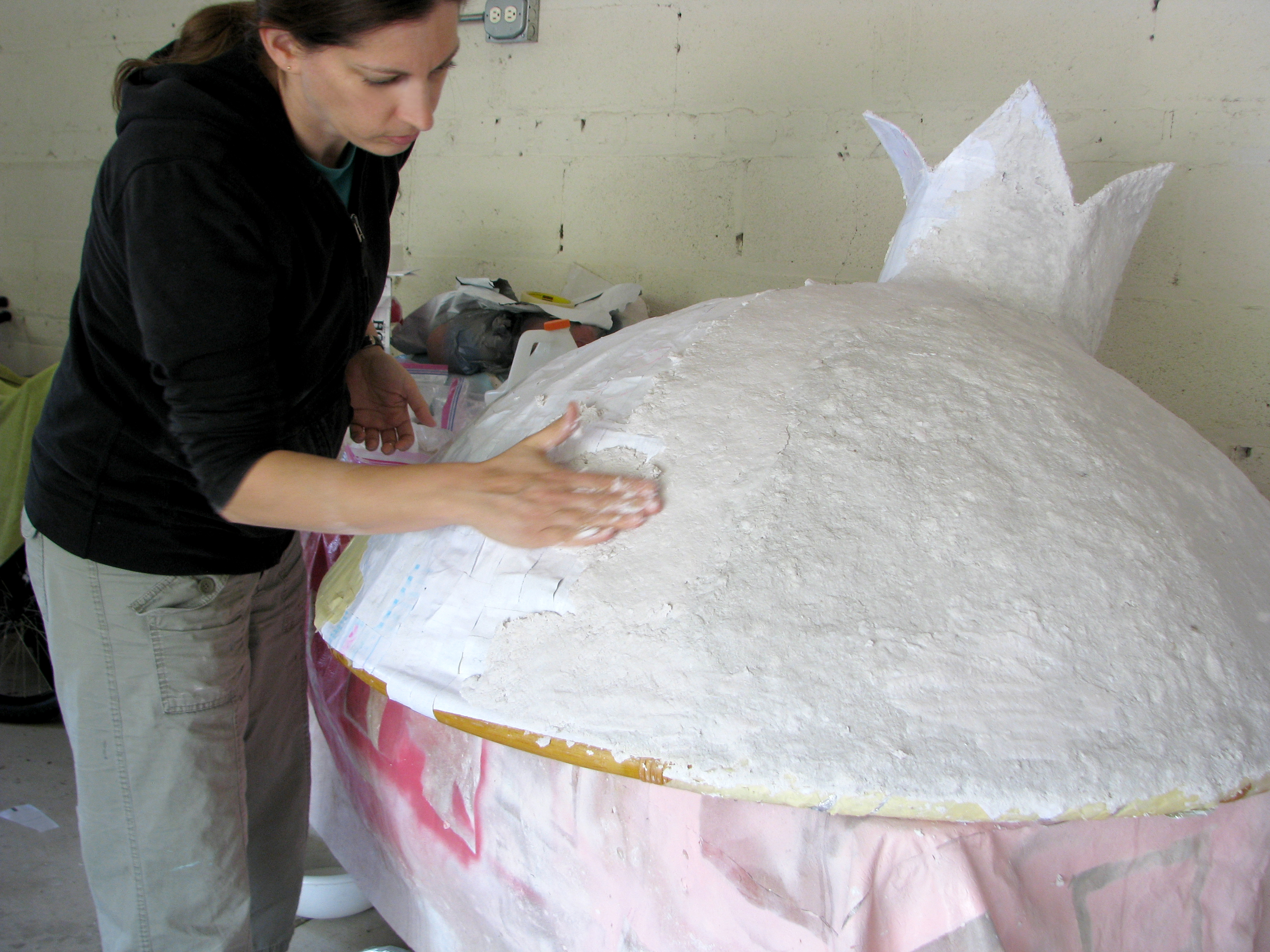 ציפינו בקוביות של ניר משי מודבק עם דבק מהול במים.gluing
